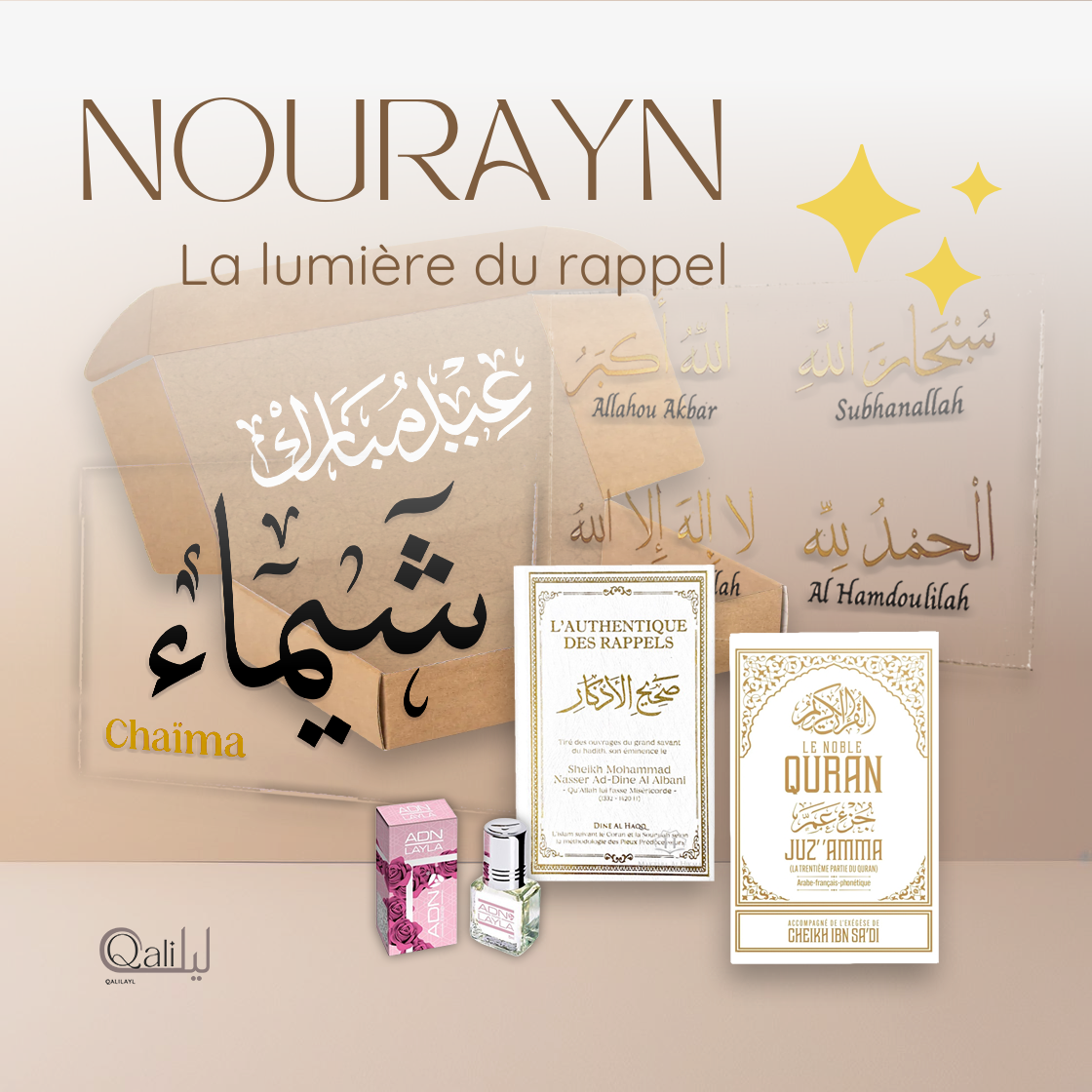 Offrez ou offrez-vous le Coffret Nourayn et faites rayonner le rappel d’Allah dans votre quotidien.